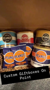 Dressed in a handsome Tennessee Peanut Logo box. Filled with three perfect cans of our peanut flavors, 5-1oz packs of our Salted Peanuts. And a quality gift card included with a message of your choice.